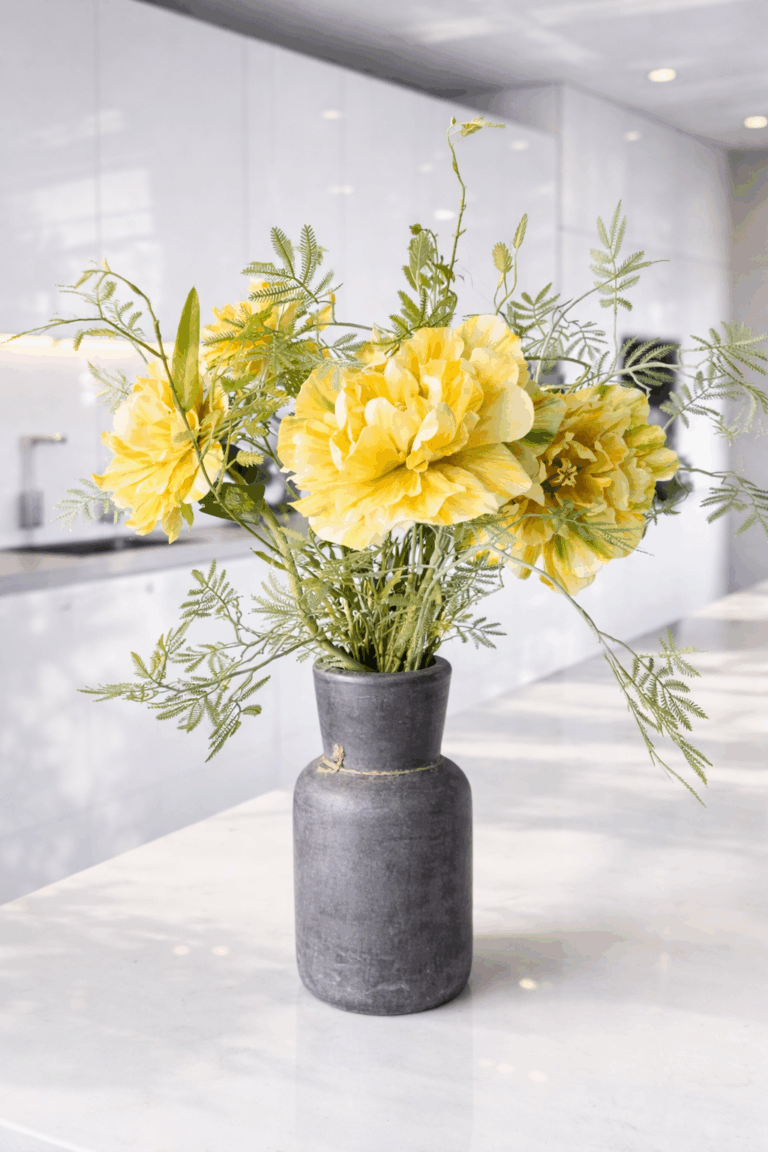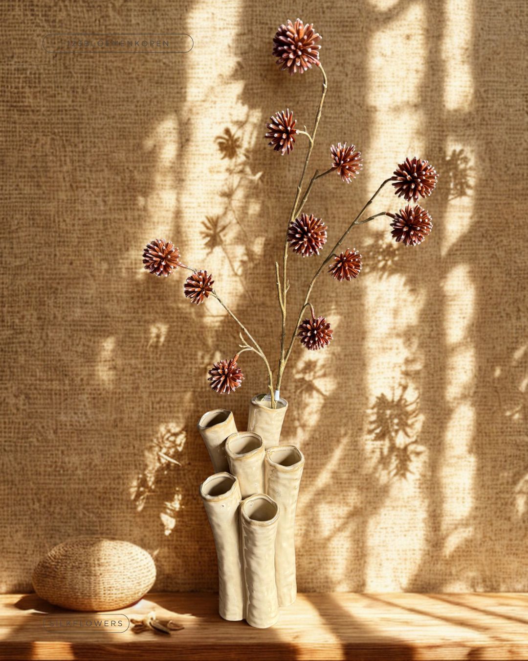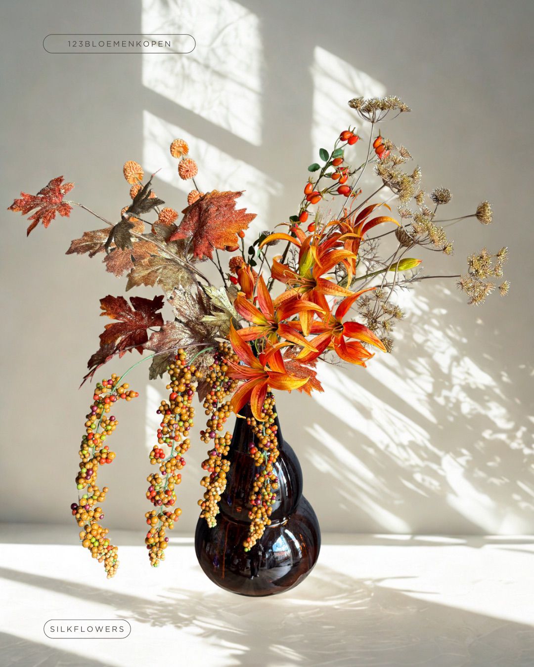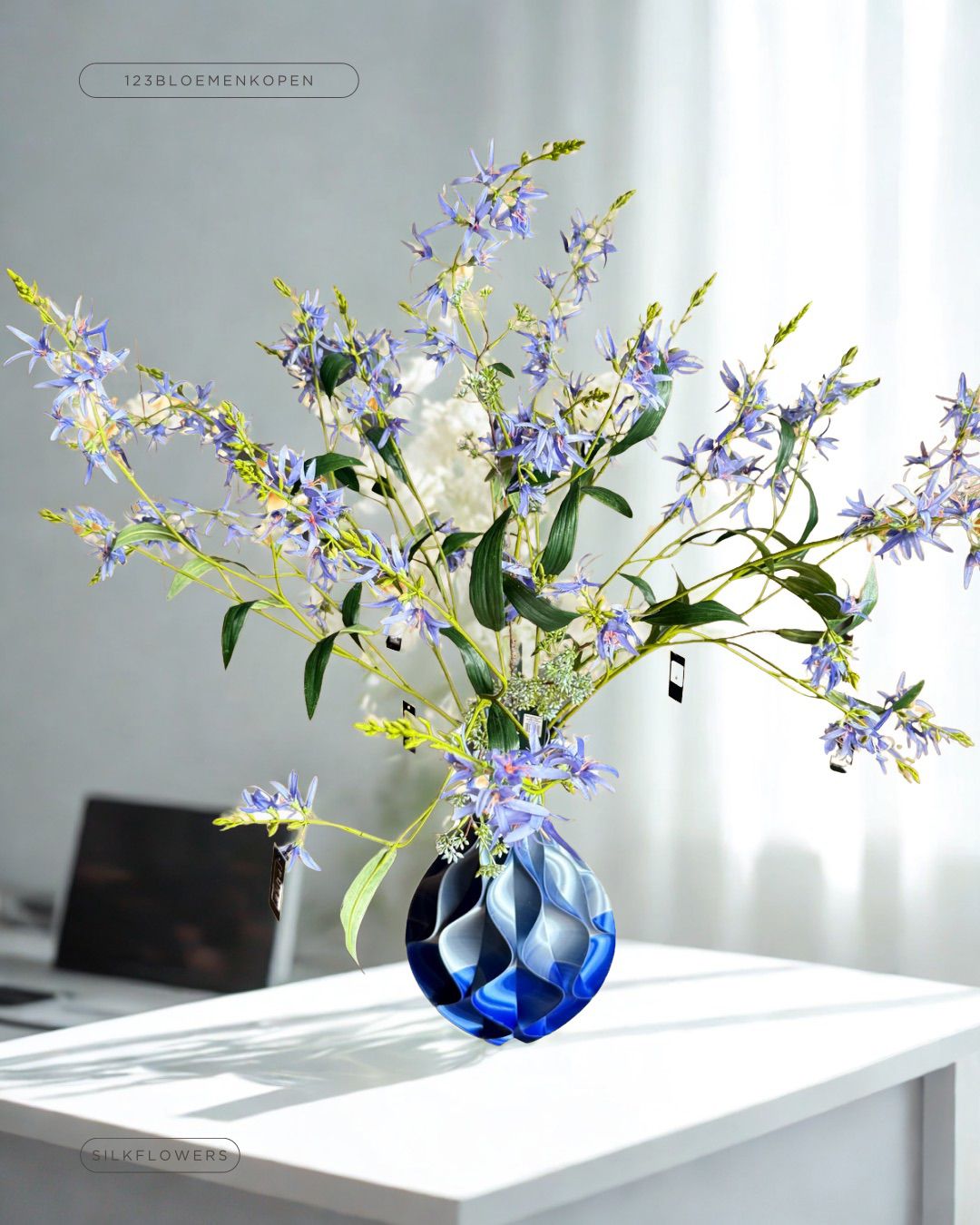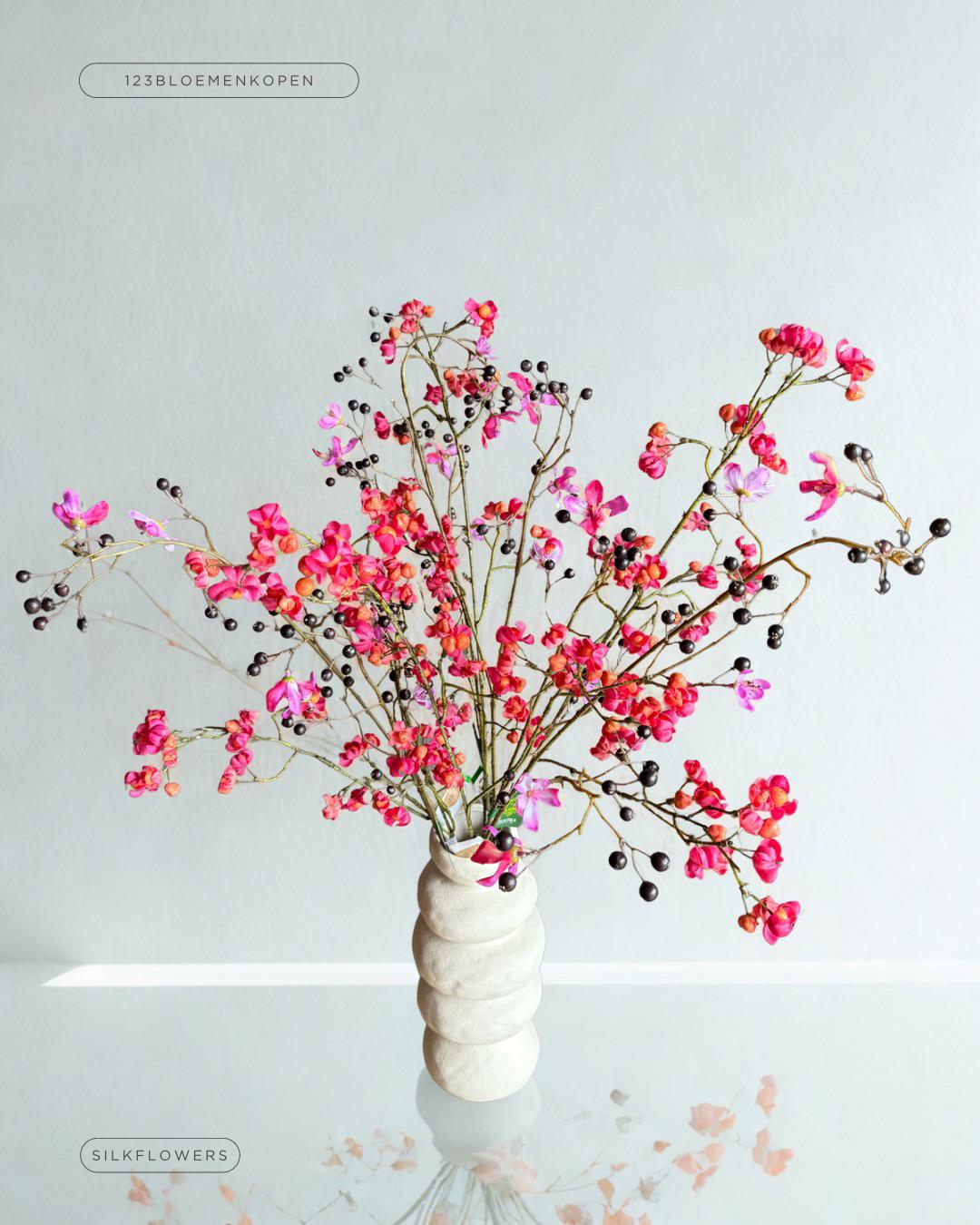 Bij 123bloemenkopen.nl draait het om complete designs. Daarom combineren we onze zijdeboeketten vaak met een zorgvuldig gekozen designer vaas, zodat je direct een complete blikvanger in huis hebt. Heb je al een favoriete vaas? Dan kun je natuurlijk ook kiezen voor een los boeket en zo je eigen unieke stijl creëren. Wij helpen je hierbij graag met een goed advies.
