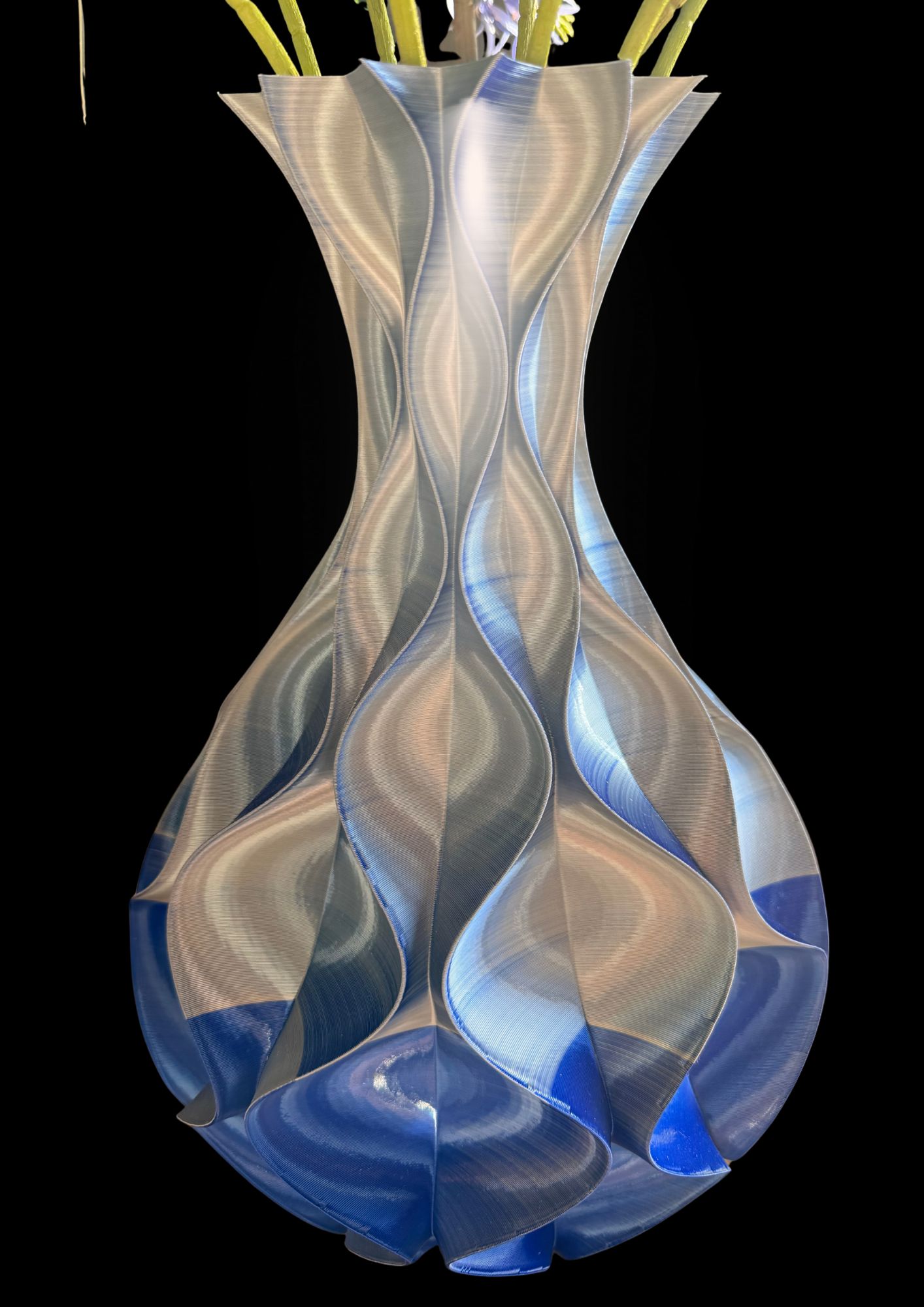 Magie in je interieur! Hoe geweldig zijn deze unieke 3D geprinte vazen die in het licht steeds van kleur veranderen!  Je kunt er geen genoeg van krijgen. En maak het af met een prachtig boeket.