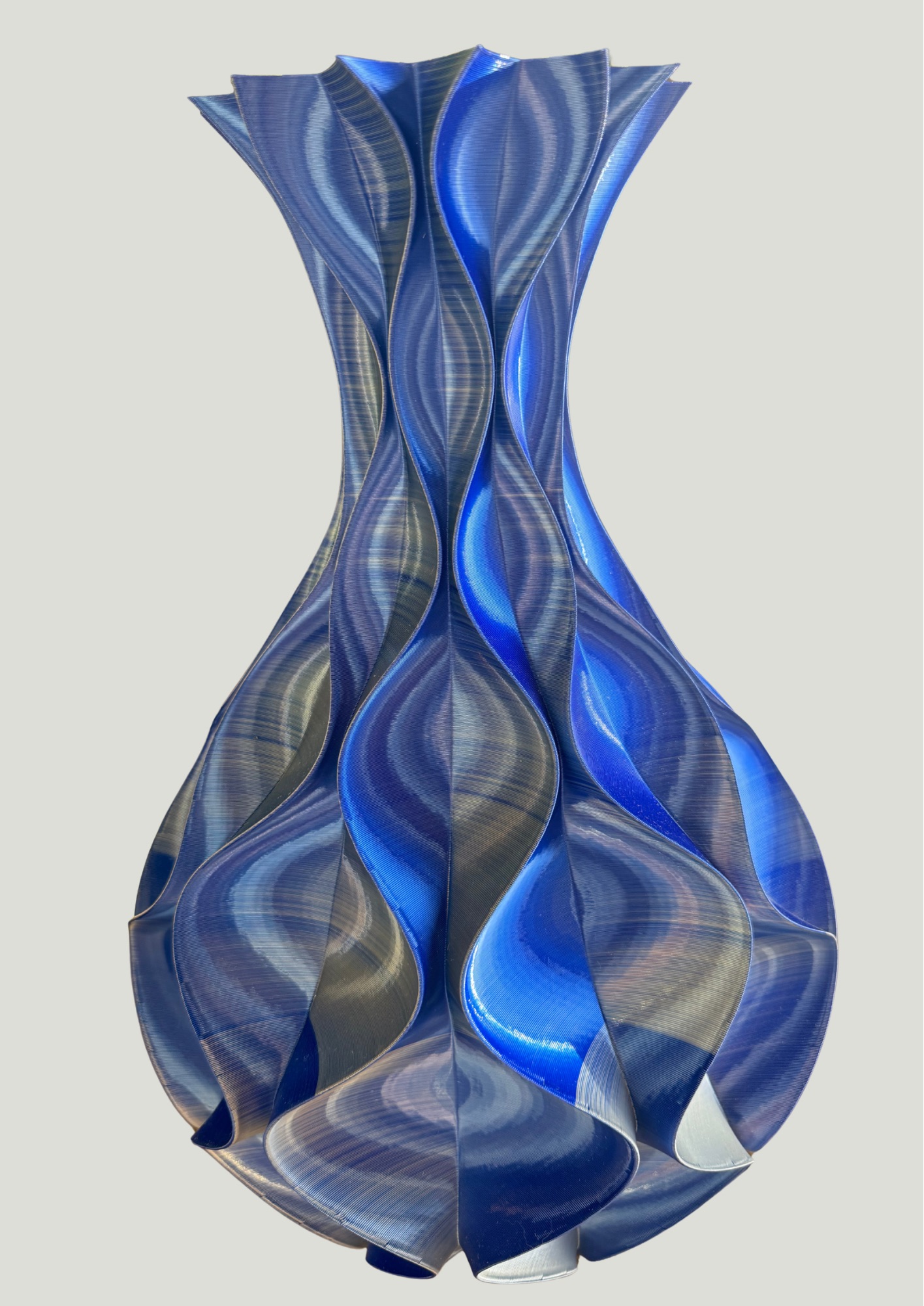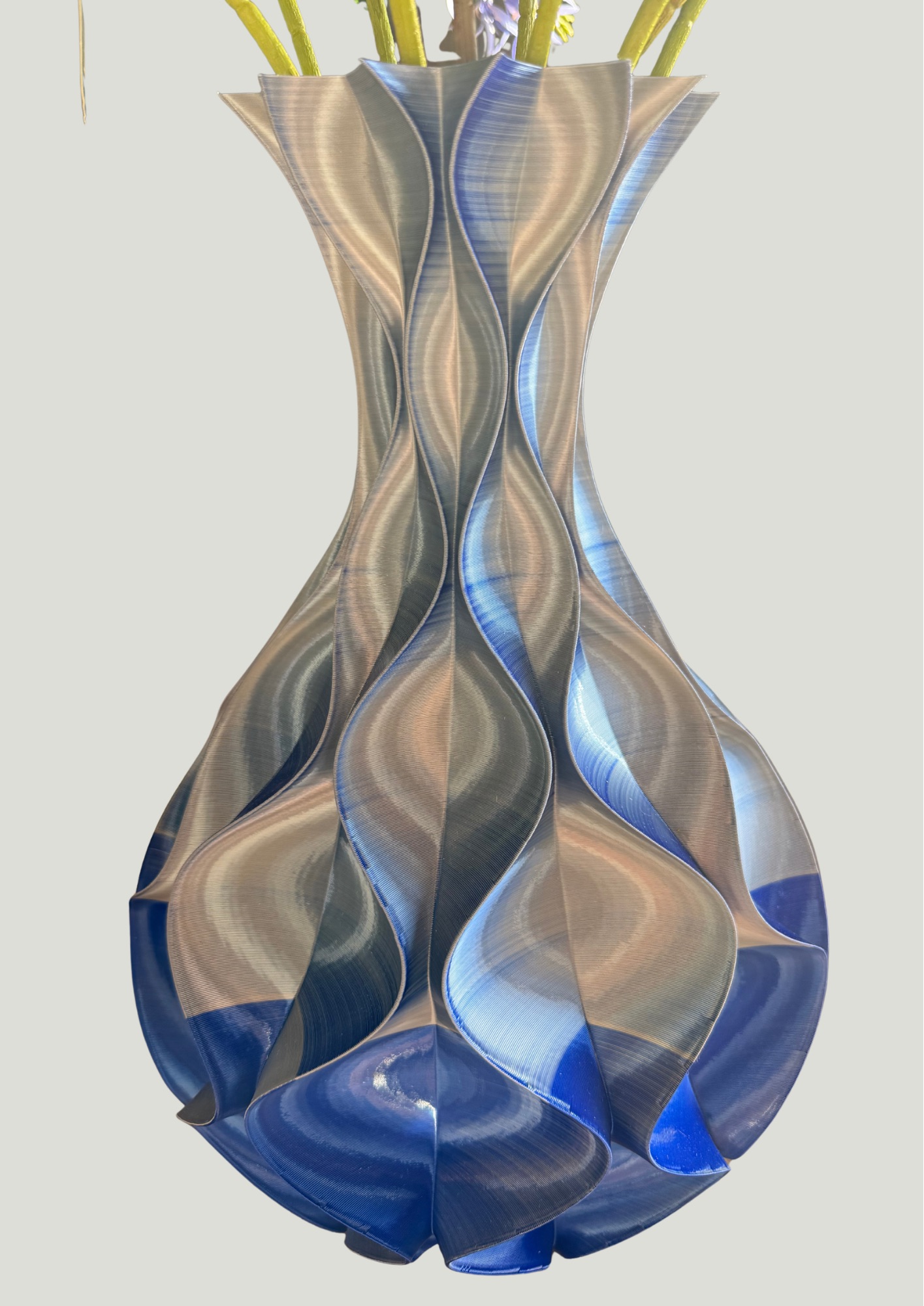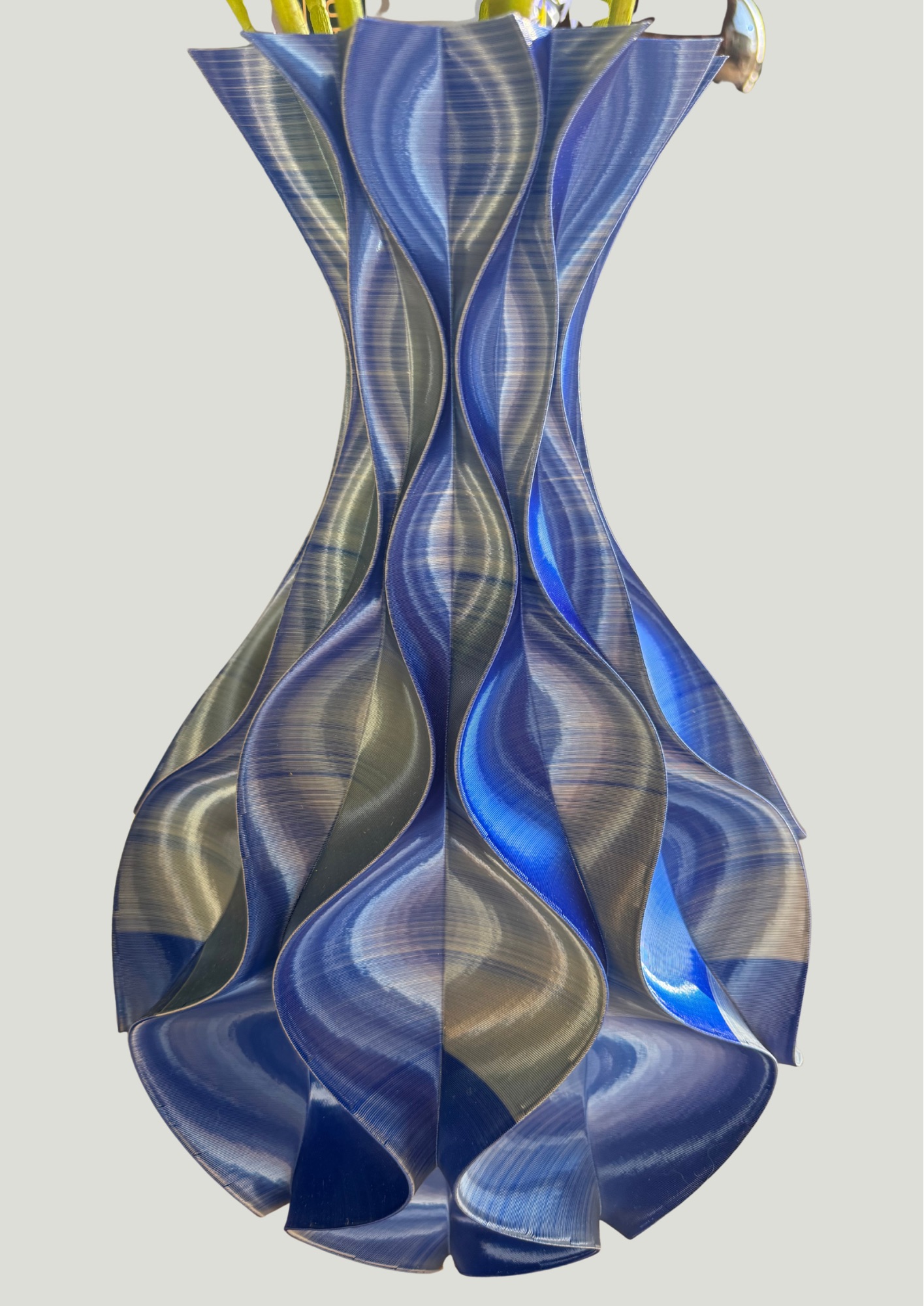 Op zoek naar woondecoratie die écht iets bijzonders toevoegt? Deze paarse 3D-geprinte vaas is een unieke eyecatcher die jouw interieur laat sprankelen. Het speciale effect? Zodra je er langs loopt of het licht erop valt, verandert de paarse kleur subtiel naar blauw. Zo ontstaat er een dynamisch en bijna magisch accent in je woonkamer, slaapkamer of kantoor.
