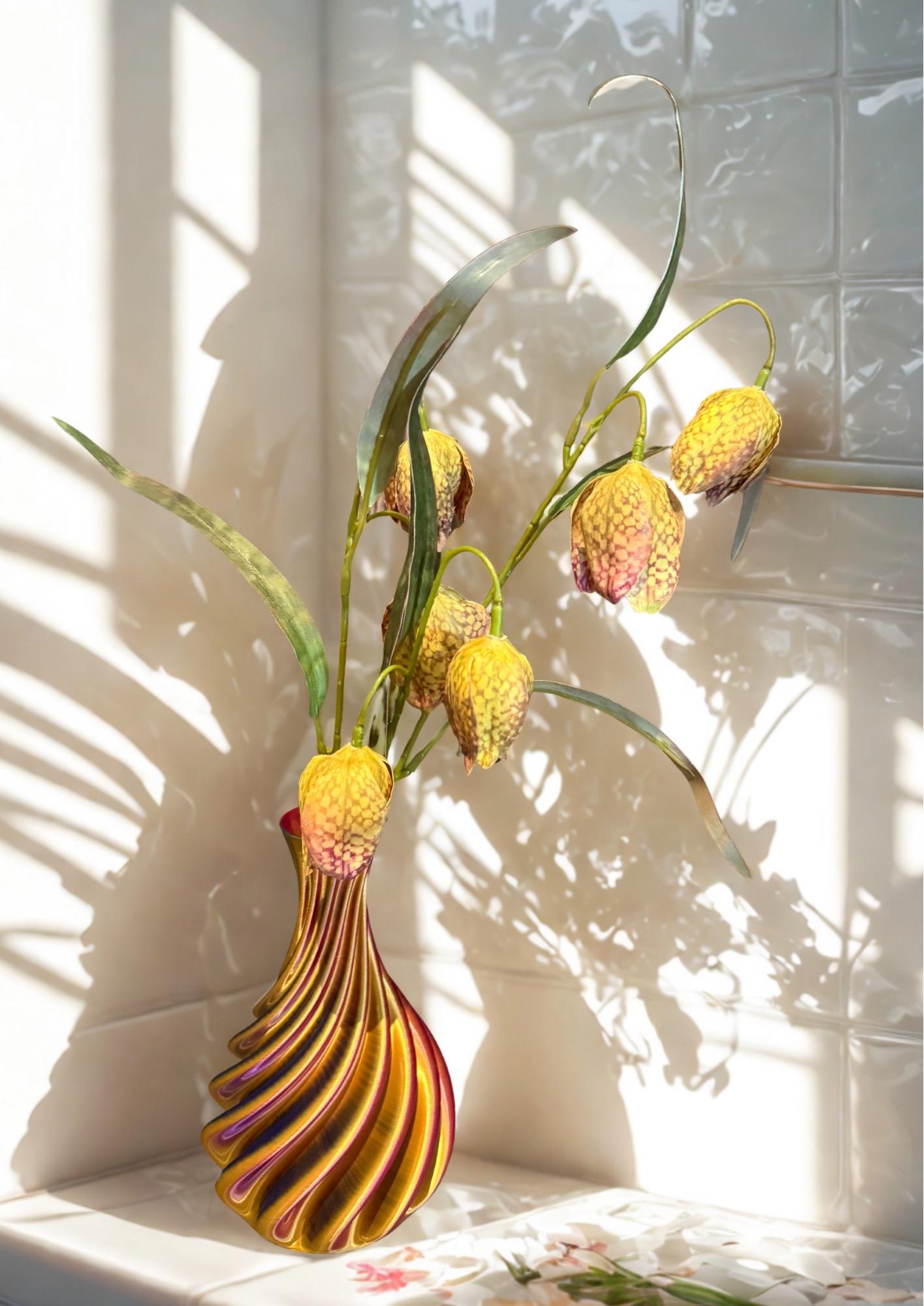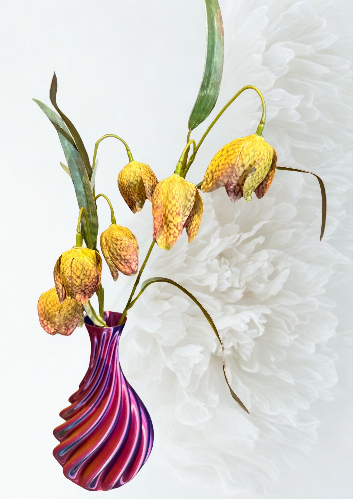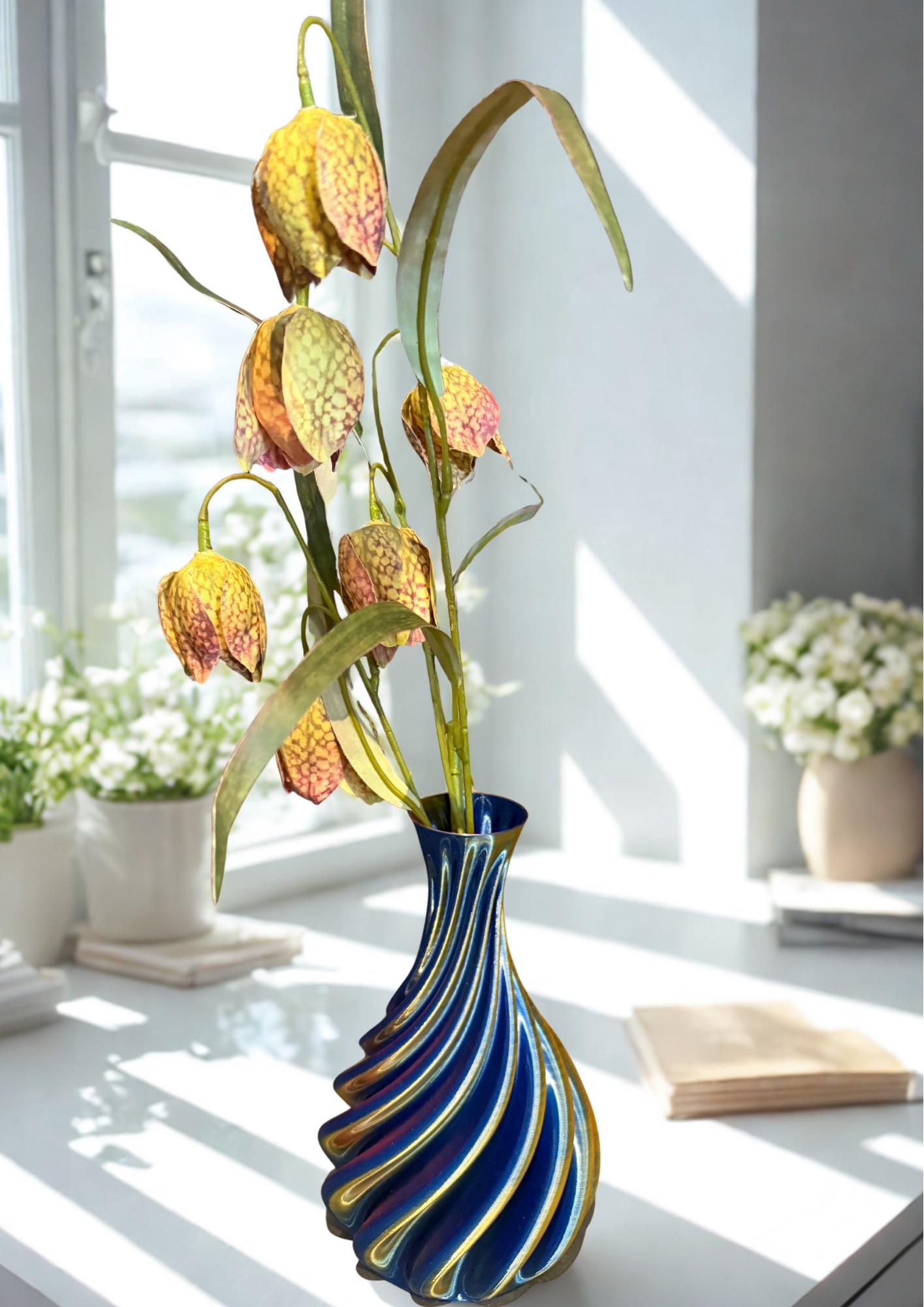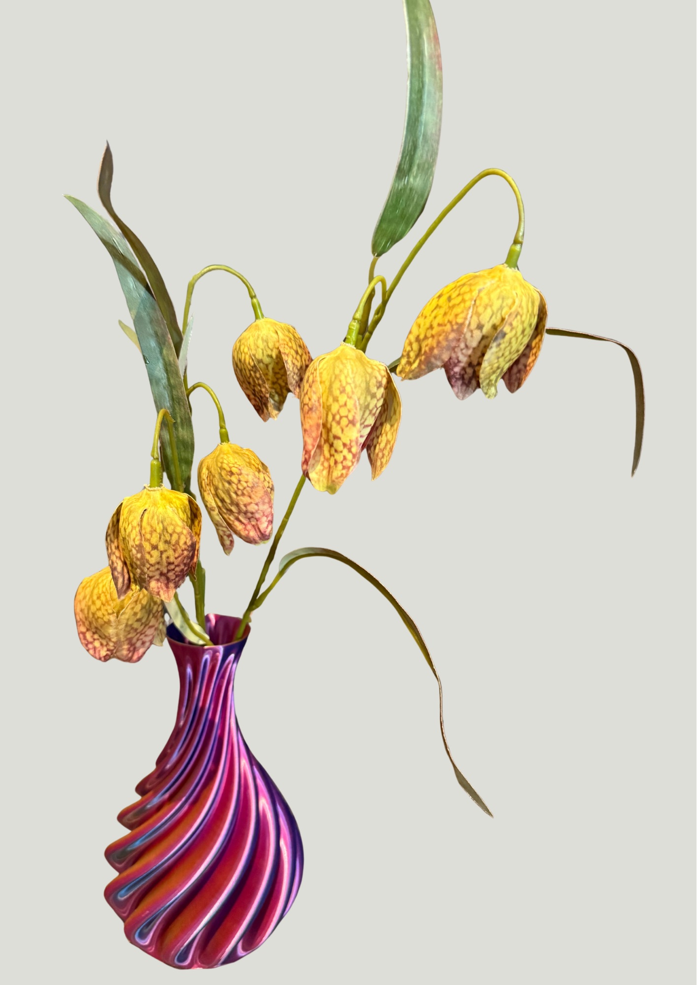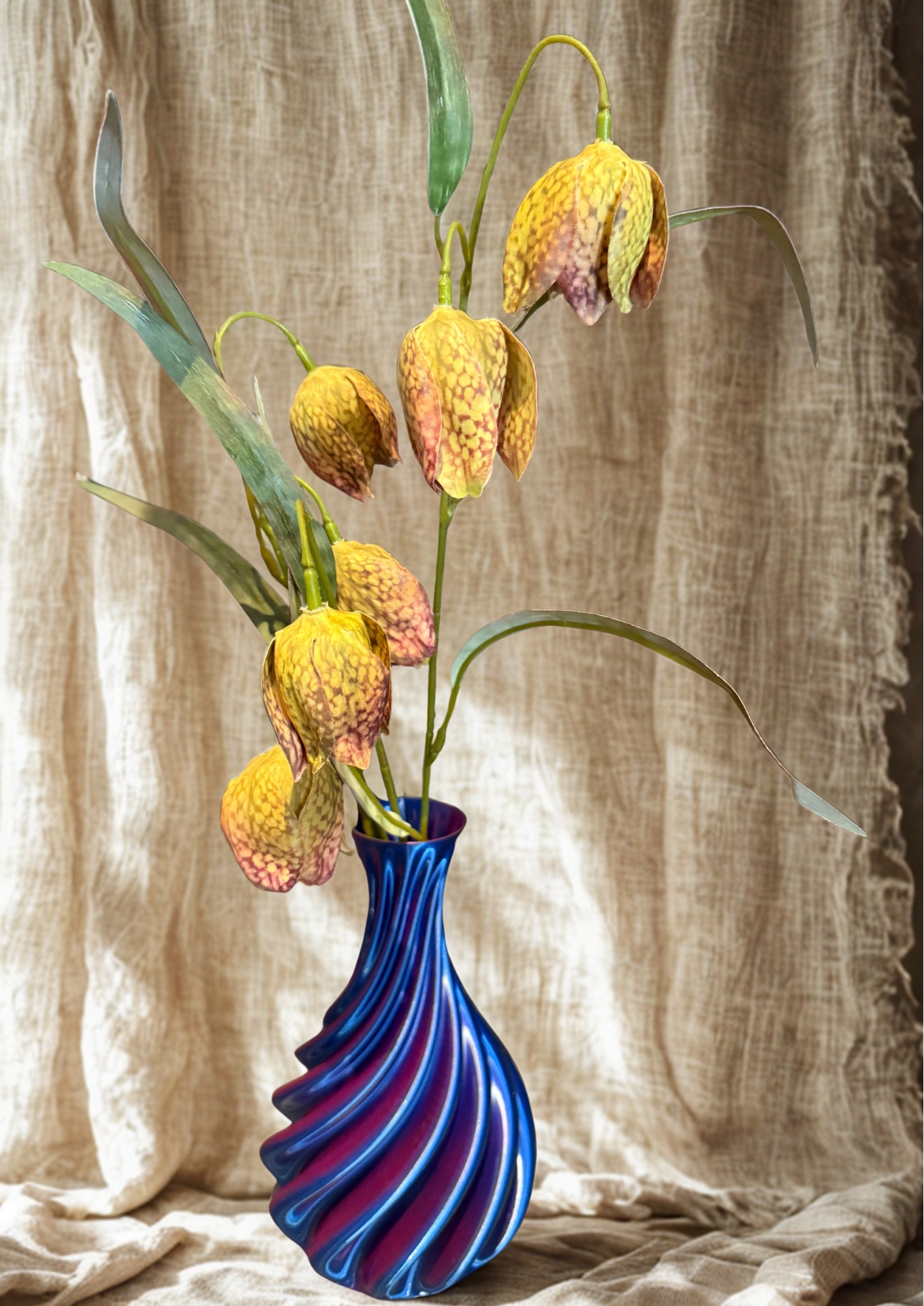 Dezelfde vaas maar dan iedere keer anders. Door de lichtval steeds een andere vaas. Ken je nog die toverballen van vroeger? Nou dit is zo’n vaas. En net zo groot als je telefoon dus je kunt er altijd een mooi plekje voor vinden. Style het af met een simpele tak bessen, bloemen, rozenbortels of appeltjes en je heb een prachtige blikvanger.