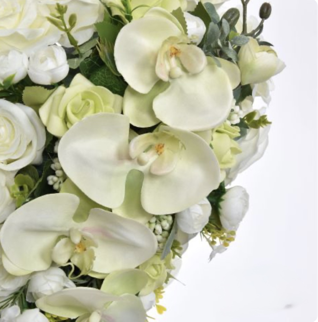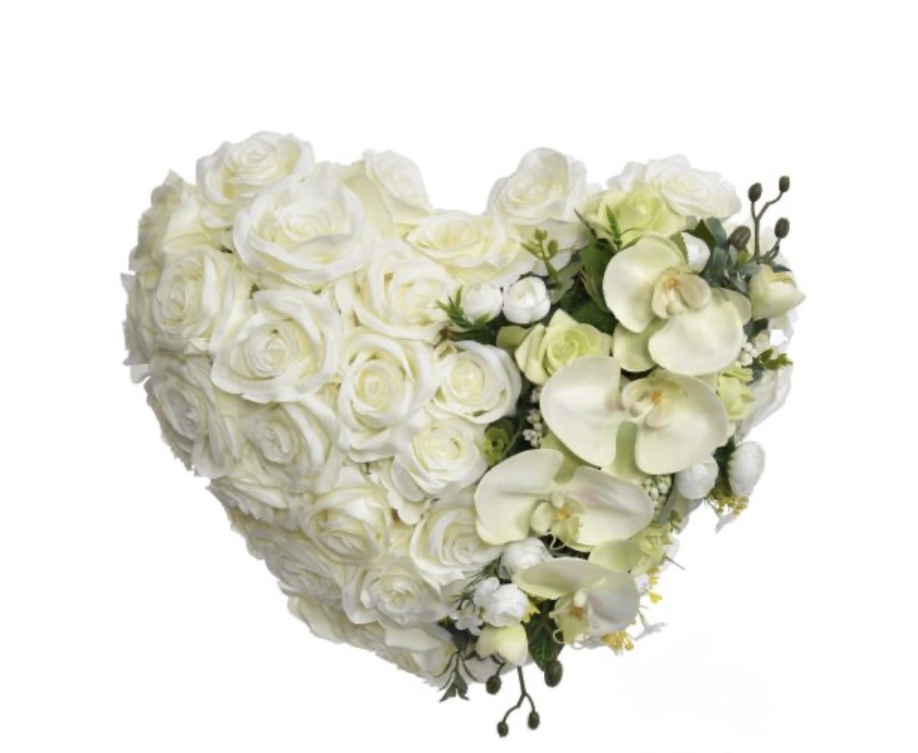 Home / Rouw- & afscheidsbloemen / ORCHIDEE ROOS OP HART 30CM CRÈME