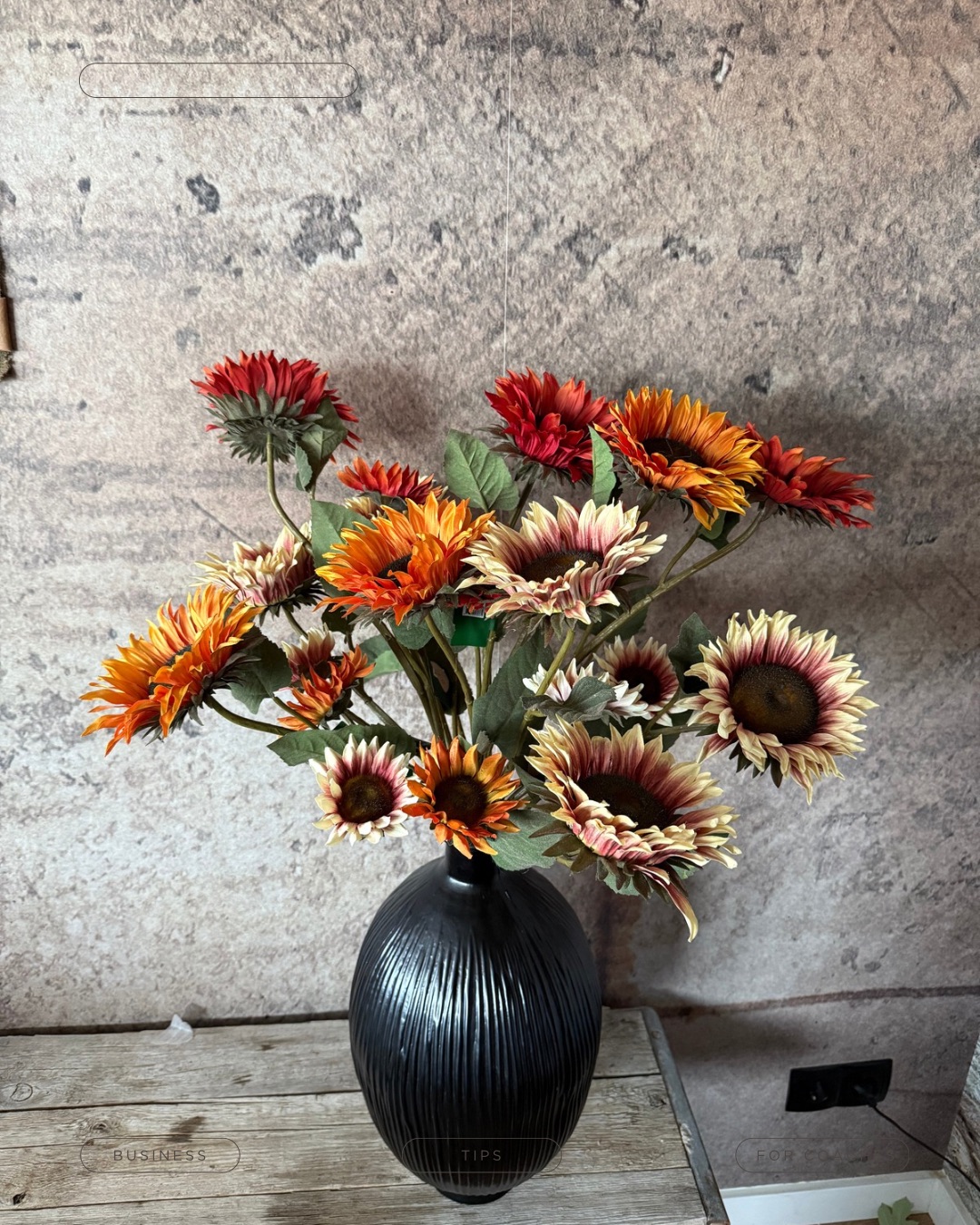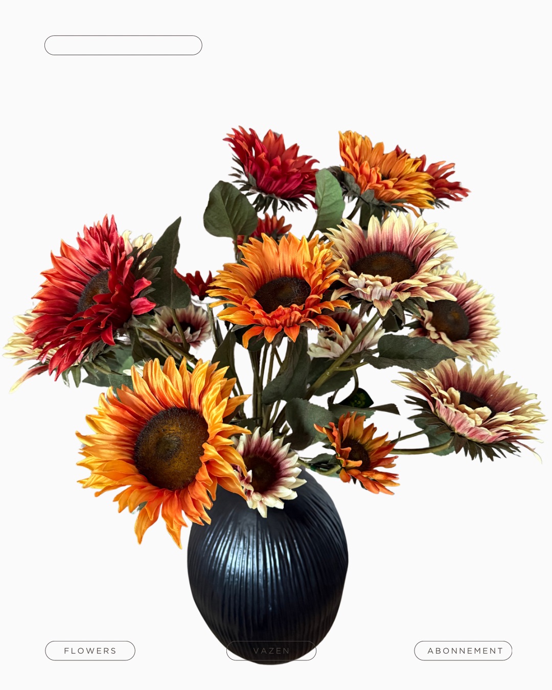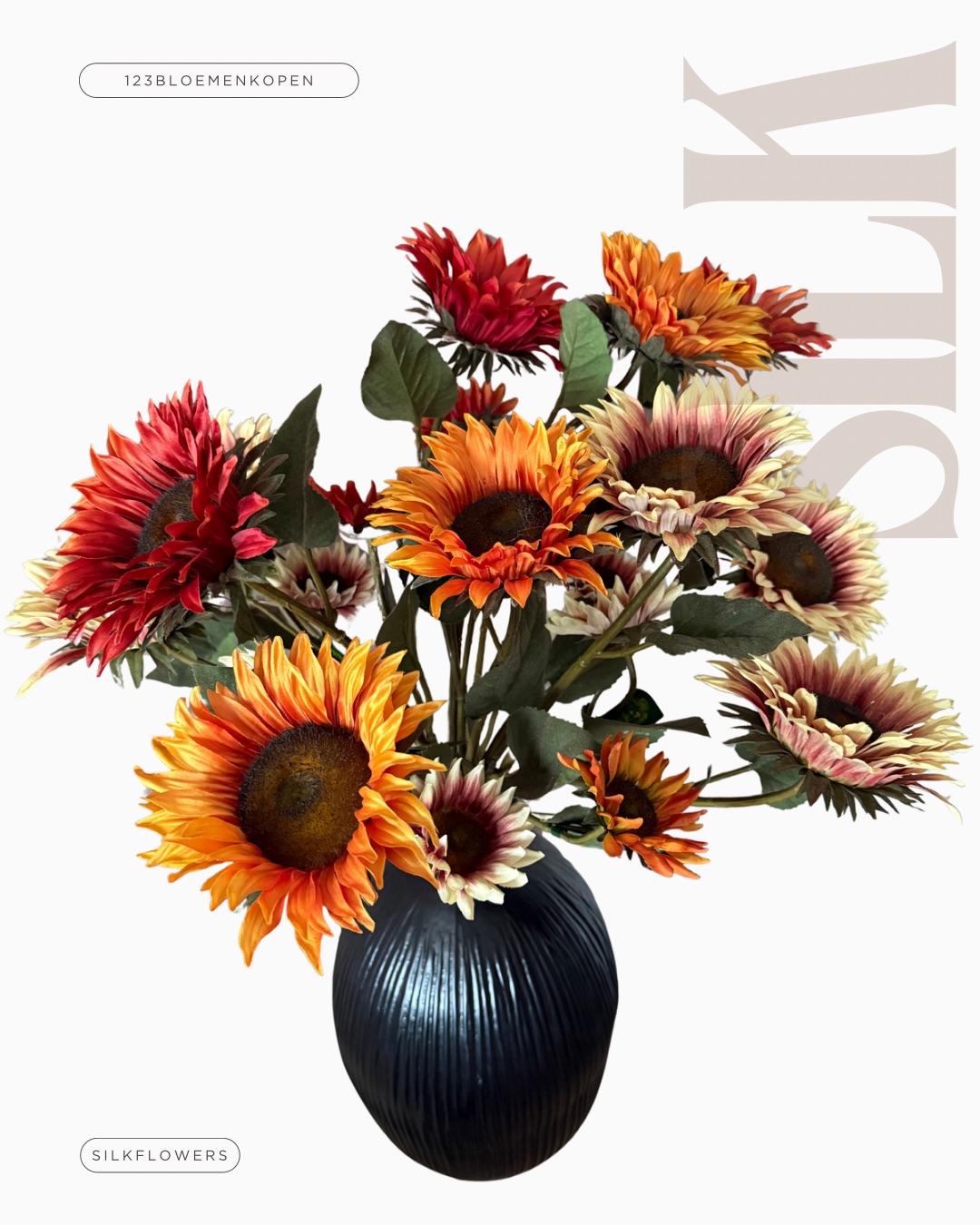 Deze schitterende zonnebloemen geïnspireerd door van Gogh. Zelfs de kleinste details lijken levensecht. Heerlijk het hele seizoen genieten van de herfst kleuren en deze prachtige bloem. Ruik de naweeen van de zomer!