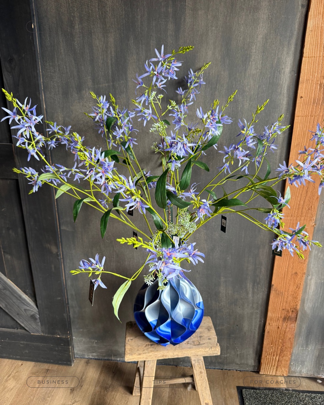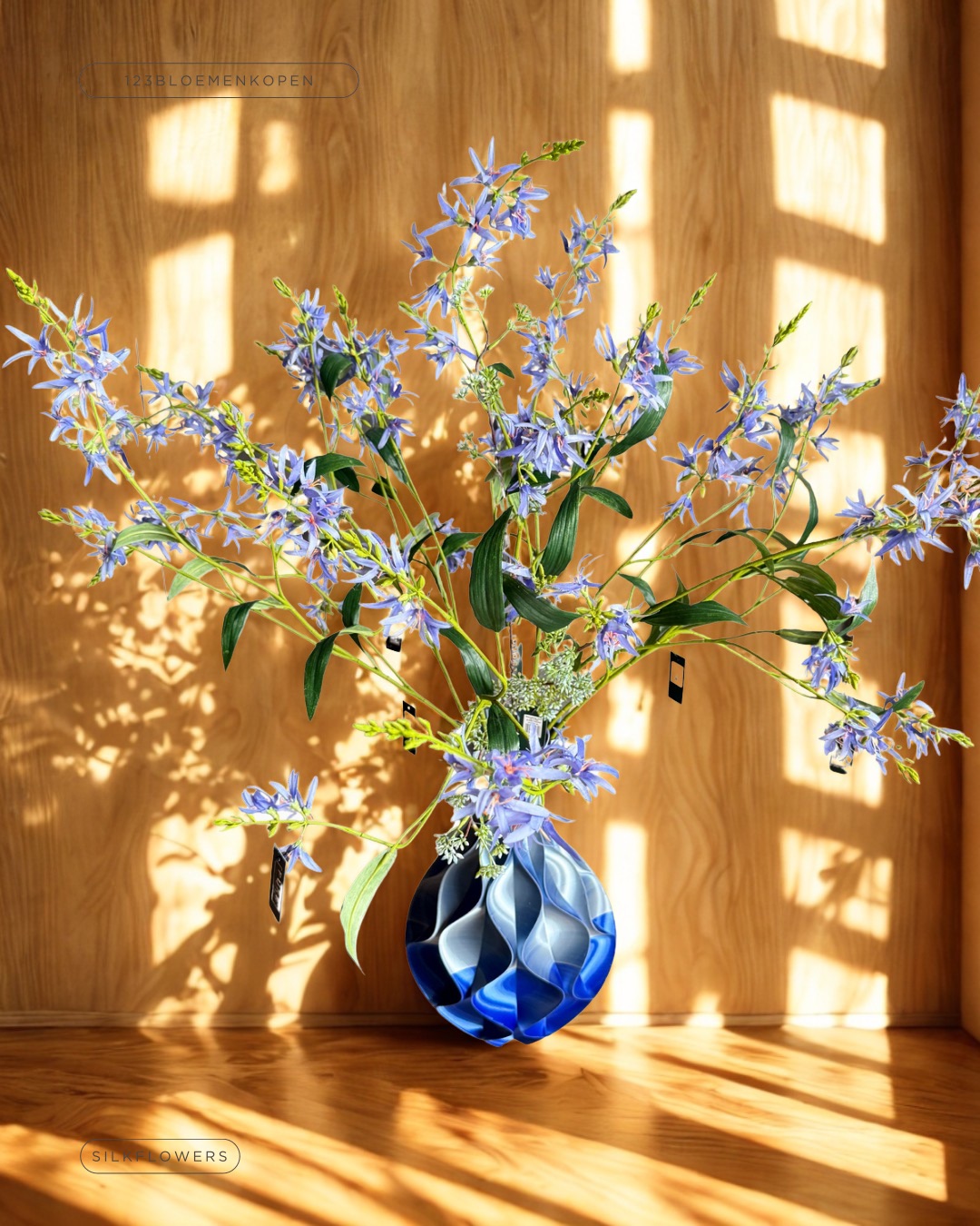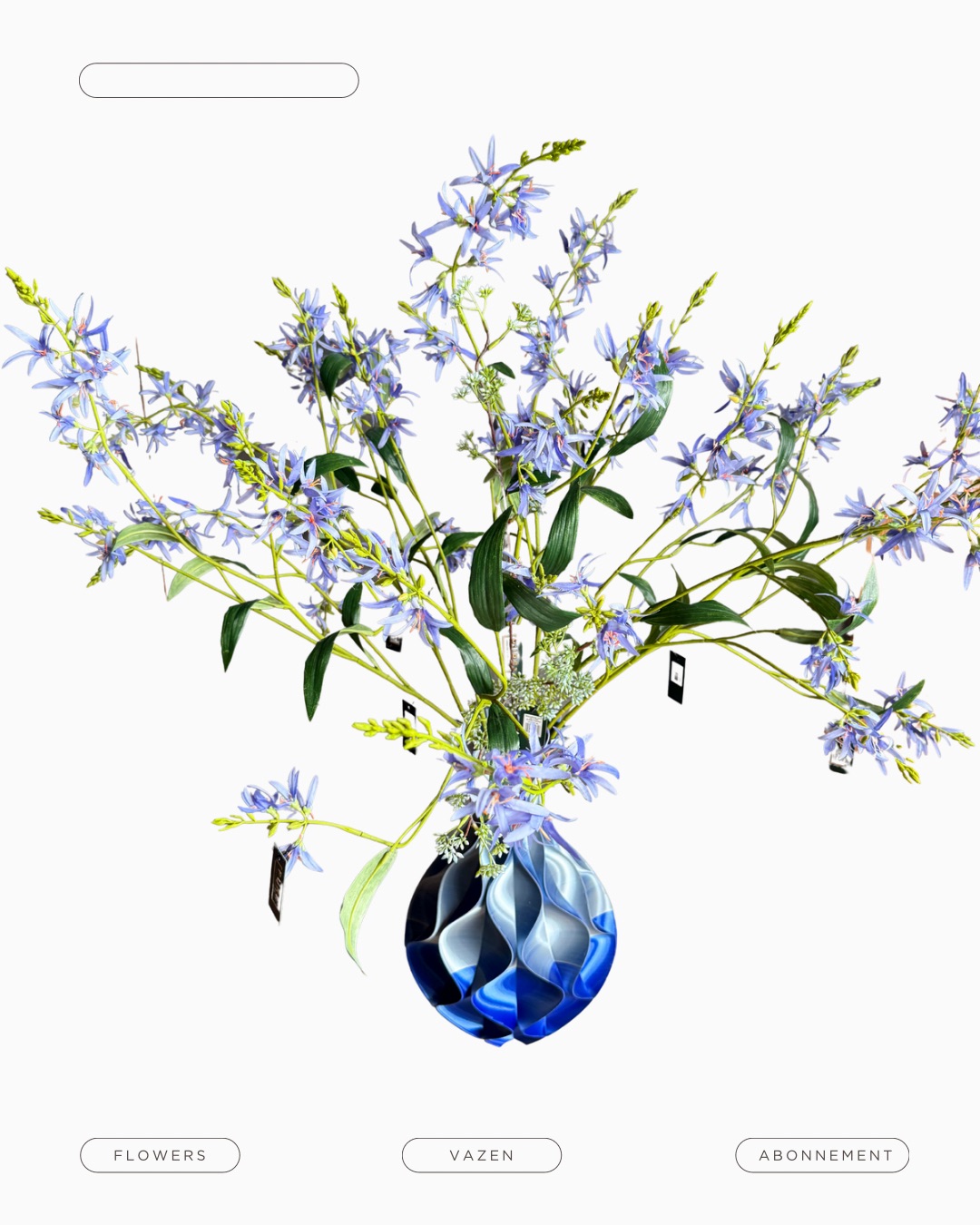 Sprankelend blauw met deze vrolijke springertjes en de unieke 3D geprinte vaas. Veranderend in het licht een eyecatcher in uw huis of kantoor. Hoogte vaas 40 cm