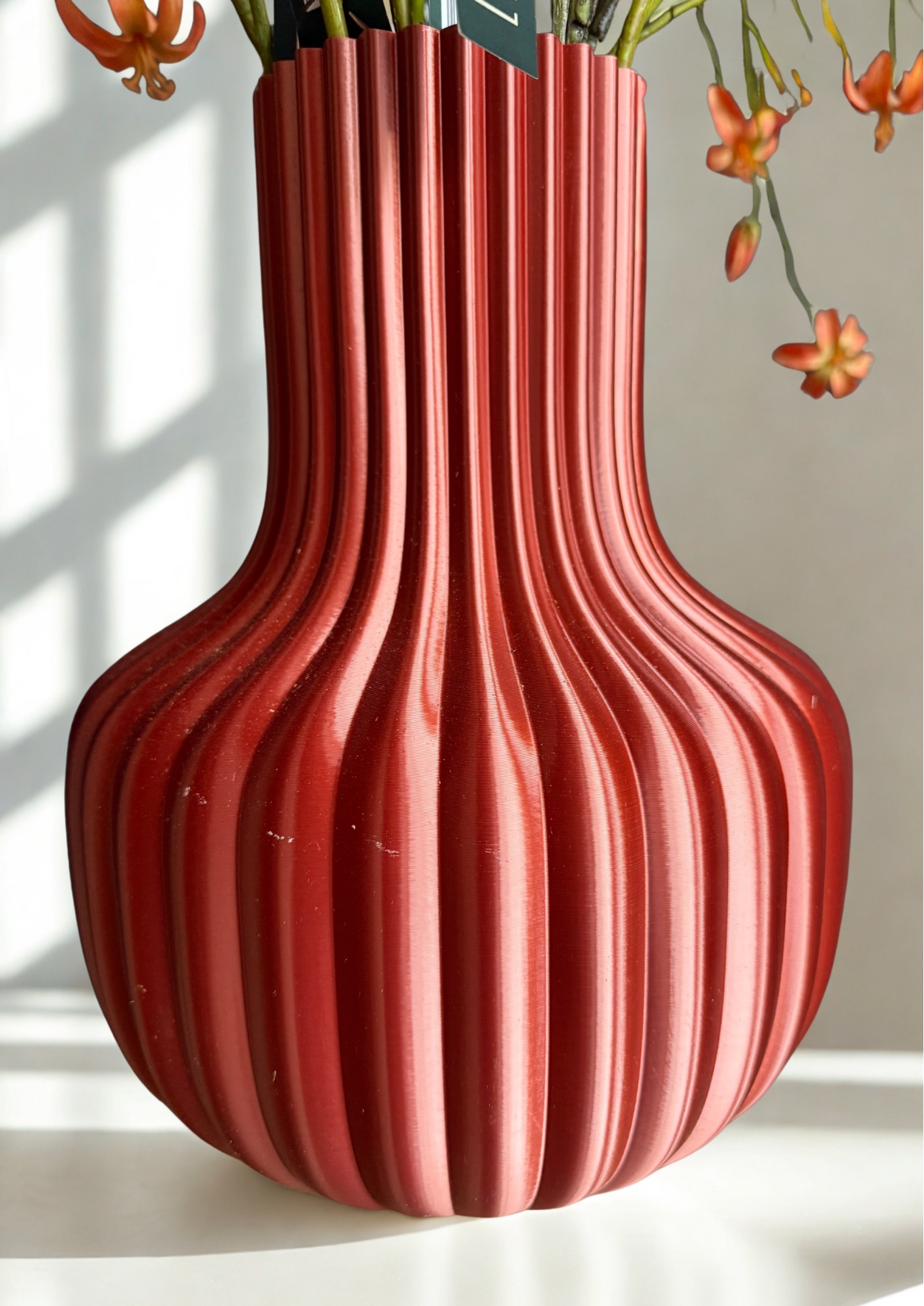 Deze paarse 3D-geprinte vaas is méér dan een accessoire – het is een kunstwerk dat jouw interieur kleur, stijl en originaliteit geeft. Wees er snel bij: onze vazen zijn beperkt beschikbaar en raken vaak snel uitverkocht.