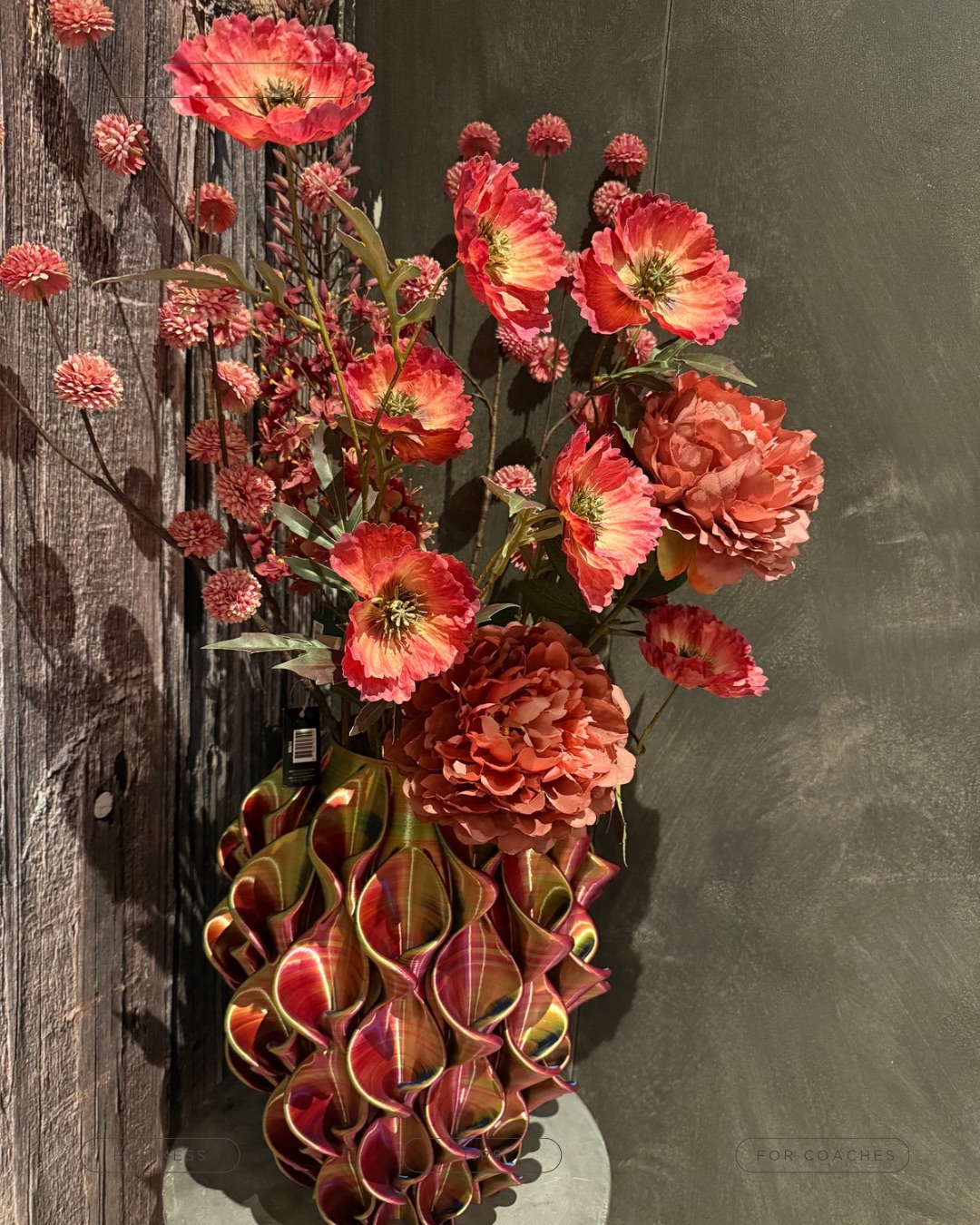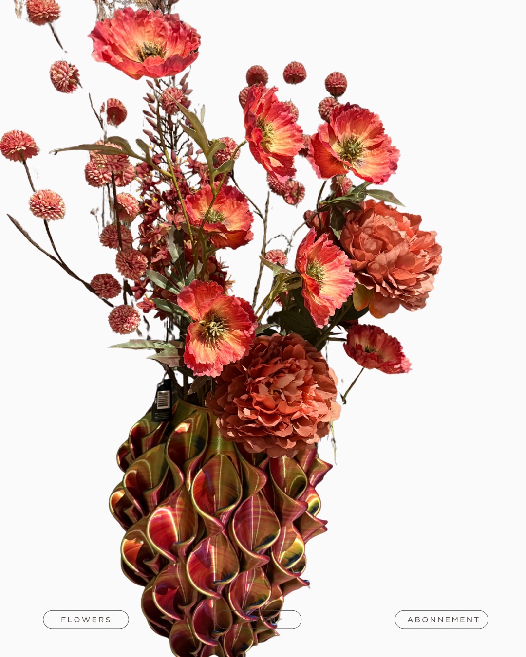 Deze weelderige mega decoratie is wel heel uniek. De prachtige 3D geprinte vaas is ruim 50 cm hoog en heeft een bolle buik. En z’n kleuren veranderen als een toverbal in het speelse licht. Je blijft er naar kijken.